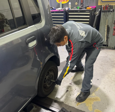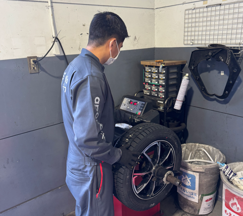 当店の国家整備士より、タイヤの交換作業をさせて頂きます。 |