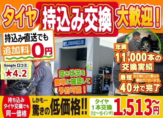 当店では、多くの府中市・日野市・稲城市・多摩市・昭島市・立川市・国立市・調布市エリアのお客様から、タイヤの持込み交換のご要望を頂いており、また、最近はネットで購入した格安タイヤやスタッドレスタイヤへの交換ニーズもある為、当店ではより便利なショップを目指し、タイヤ交換のみのお客様も大歓迎しております。